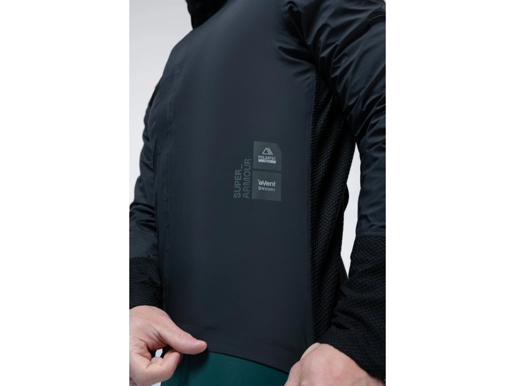 Plně podlepená vnější vrstva je vyrobena z renomované membrány eVent® DVstorm™, která působí jako nepromokavá a větruodolná bariéra a zároveň umožňuje optimální prodyšnost a odvod potu. Uvnitř izolace Polartec® Alpha® zaručuje pokročilý tepelný komfort s vynikající prodyšností. Její inovativní design kombinuje hydrofobní vlákna s pevným síťovaným jádrem, což podporuje aktivní cirkulaci vzduchu. Jedná se o lehkou, stlačitelnou tkaninu, která vysoce účinně odvádí vlhkost vznikající při námaze.
