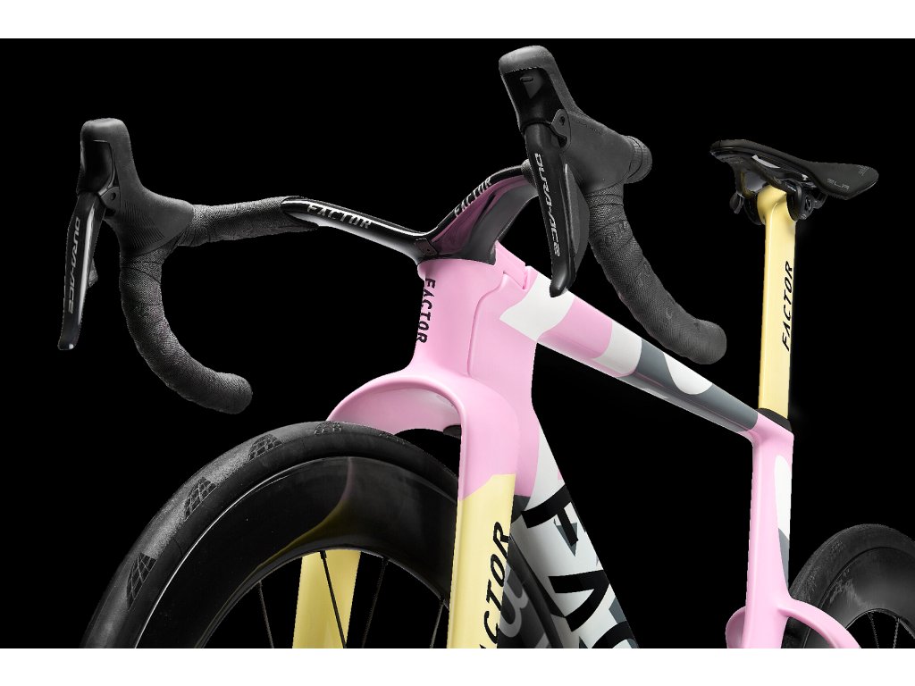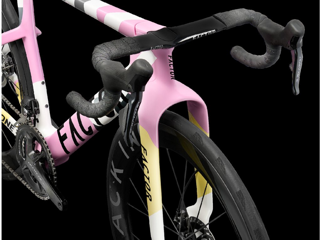 - Nejradikálnější Aerodynamika: Kolo využívá nově uvolněná pravidla UCI k implementaci systému Bayonet Fork Chin Fairing. Tato dopředu promítaná struktura aktivně řídí proudění vzduchu a eliminuje odpor (spillover drag) vytvořený přední pneumatikou a korunkou vidlice. Design FACTOR ONE nejen řeže vzduch, ale diktuje, kam vzduch proudí dál.