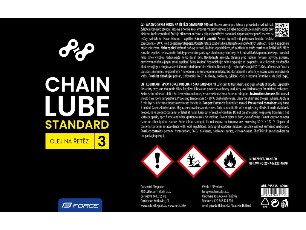 olej na řetěz FORCE STANDARD, sprej 400 ml