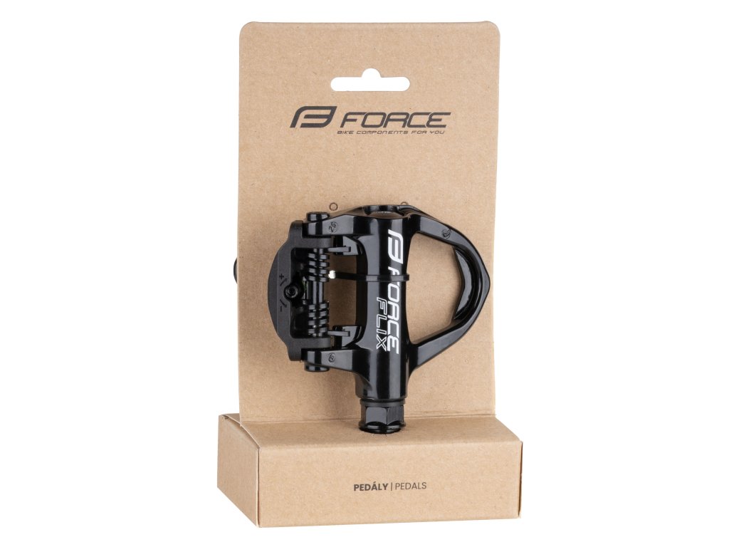 pedály FORCE FLIX nášlapné silniční + zarážky, črn