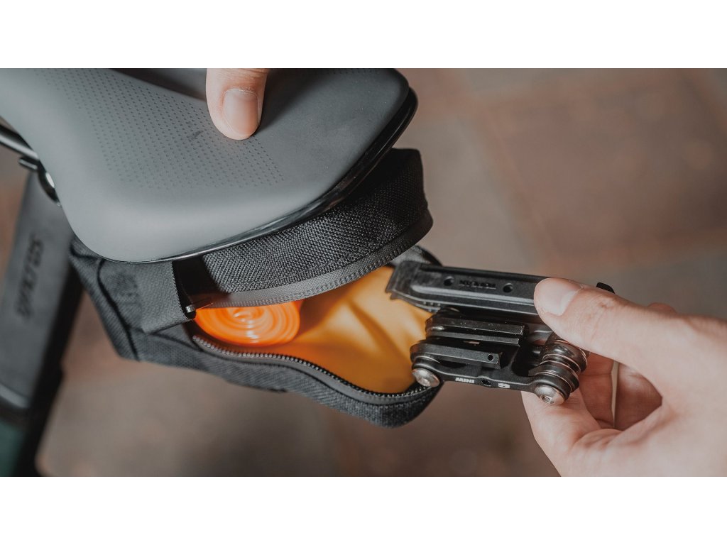 Kompaktní podsedlová brašna s popruhem na suchý zip pro přepravu duše, montpák, případně dalších drobností pro bezpečnou a jistou jízdu. Vestavěná protiskluzová tkanina zajišťuje bezpečnost při upevnění. K dispozici jsou tři velikosti a dvě barvy.