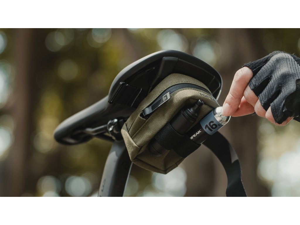 Kompaktní podsedlová brašna s popruhem na suchý zip pro přepravu duše, montpák, případně dalších drobností pro bezpečnou a jistou jízdu. Vestavěná protiskluzová tkanina zajišťuje bezpečnost při upevnění. K dispozici jsou tři velikosti a dvě barvy.